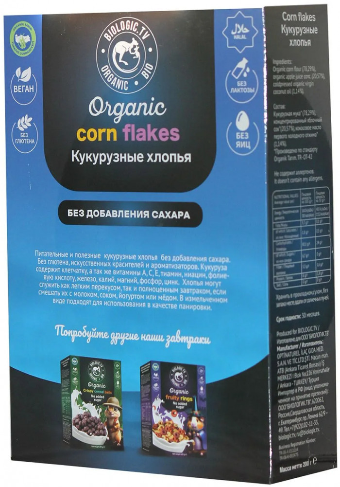 Biologic.tv Сухой завтрак органический «Кукурузные хлопья»