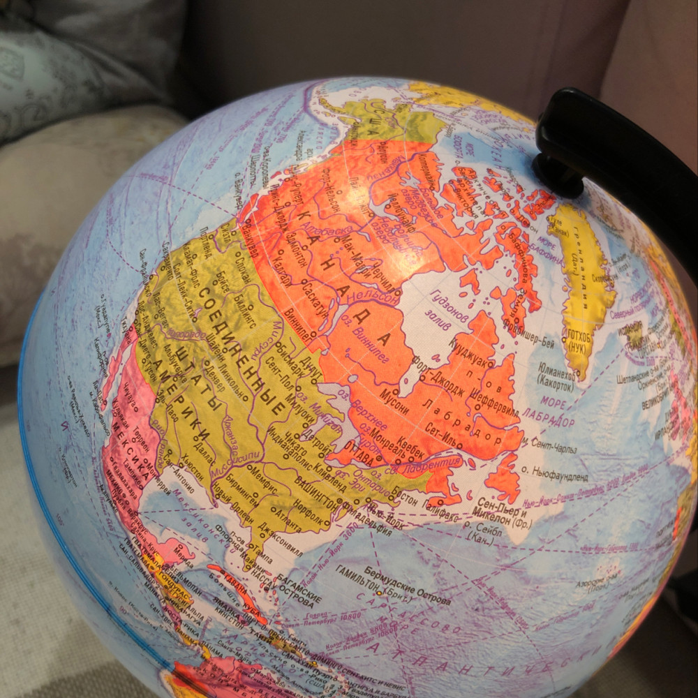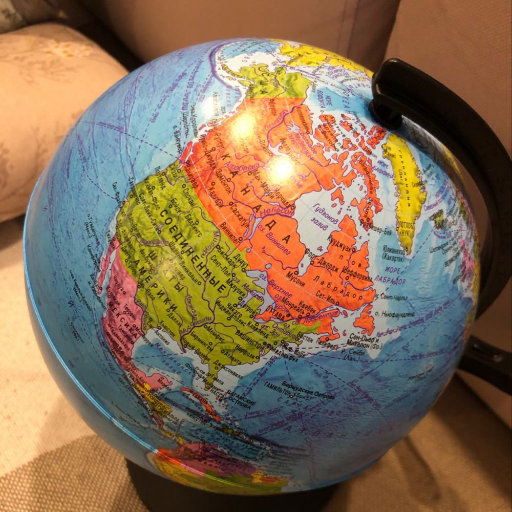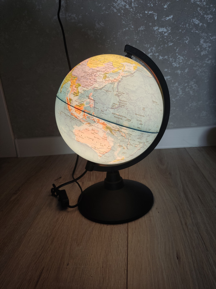Хороший глобус, качественный, с подсветкой вообще супер. Печать хорошая.