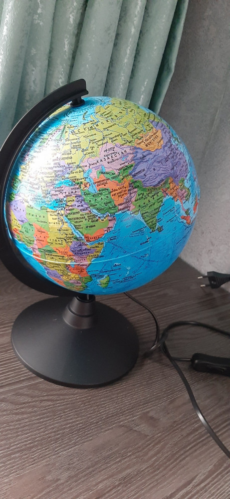 Своевременная доставка, качественная упаковка! Настольный глобус с подсветкой диаметром 21 см. Сыну глобус понравился.