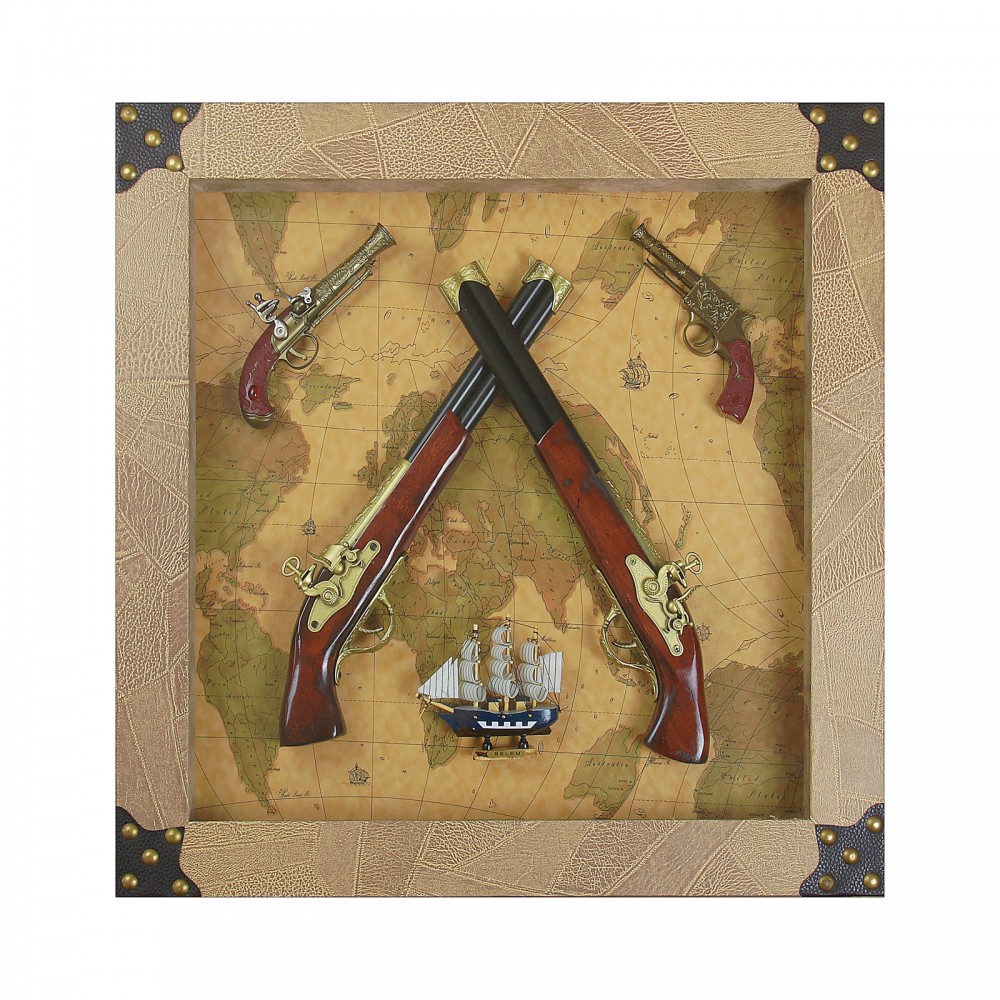 В данный момент этот товар отсутствует в продаже. Возможно, у нас найдется аналогичный или похожий товар здесь. Сувенирное изделие в раме, четыре мушкета и корабль на карте мира станет идеальным украшением загородного дома или рабочего кабинета.