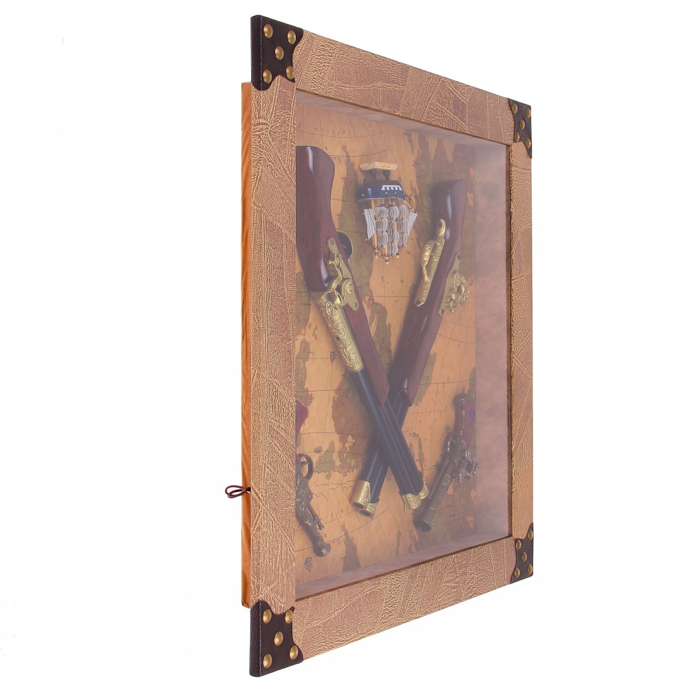 | Сувенирное изделие в раме, четыре мушкета и корабль на карте мира