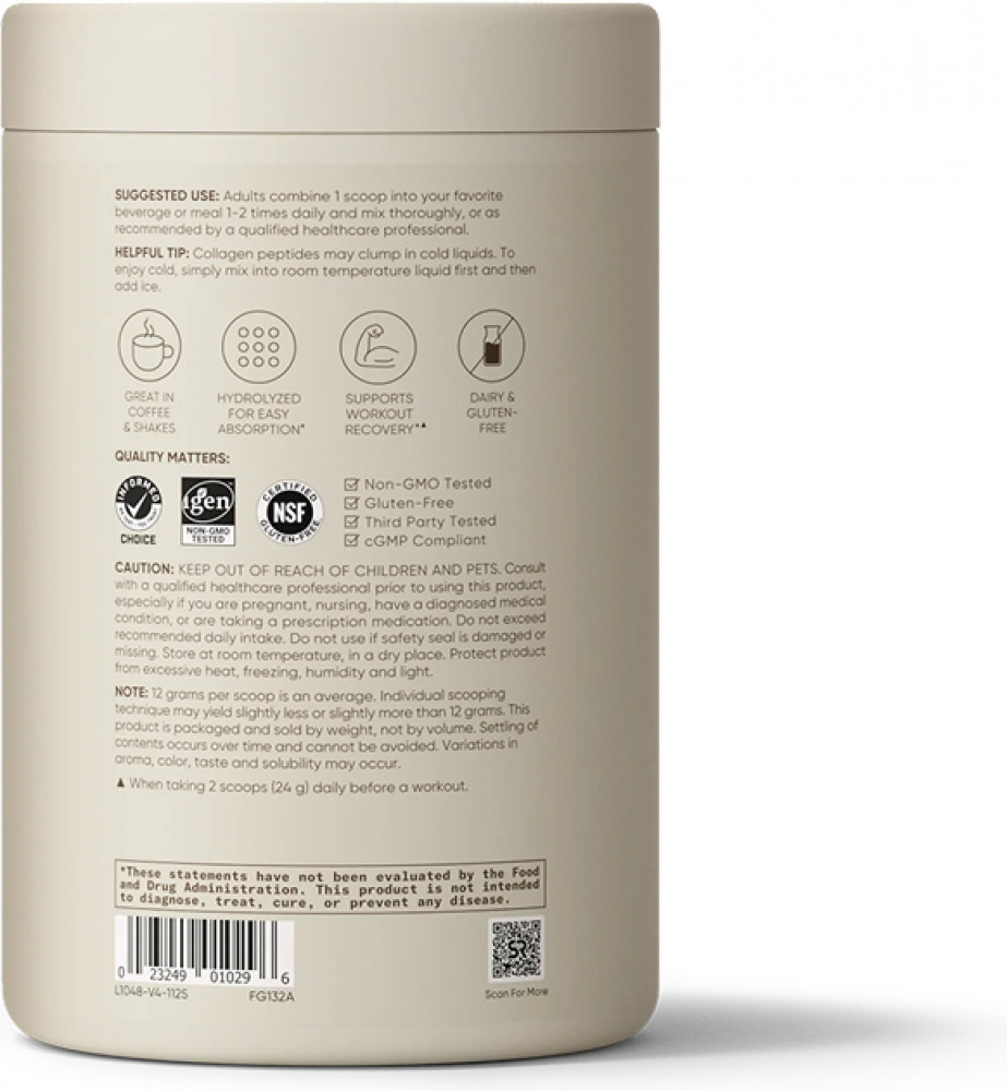 💳 Оплатить за товар можно при получении 🇰🇿 Есть бесплатная доставка по Казахстану от 1 дня 🎁 Копите бонусы с каждой покупки Коллаген «Ваниль» Sports Research, 480 г — это пептидный коллаген премиум-класса на основе говяжьих collagen peptides 1 и 3 типа. Гидролизованный состав обеспечивает высокую биодоступность, а приятный ванильный вкус делает ежедневный приём комфортным. Одна порция (мерная ложка) содержит коллаген 10000мг(10г) — оптимальную дозировку пептиды для мышц, которая способствует восстановлению после физических нагрузок, а также укреплению суставов и соединительных тканей. Кроме того, пептиды для похудения помогают контролировать аппетит, что делает продукт актуальным в рамках поддержания веса. Это натуральные витамины для кожи, поддерживающие её упругость, эластичность и здоровый вид изнутри. Пептиды коллагена работают системно, обеспечивая комплексный уход за организмом. Для достижения устойчивого результата рекомендуется регулярный приём курсом от 3 до 6 месяцев. Содержимого упаковки 480 г достаточно на 40 порций. Растворите одну мерную ложку (около 11 г) в стакане тёплой воды, кофе или другом напитке — холодная жидкость может вызвать комкование. Храните банку плотно закрытой в сухом прохладном месте. |