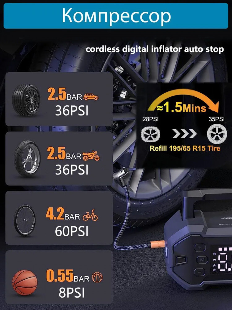Устройство позиционируется как решение для активного отдыха и экстренной подкачки воздуха.