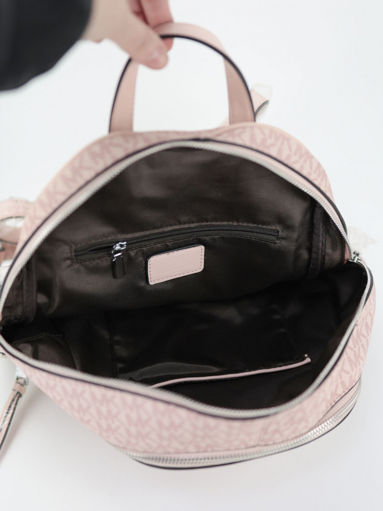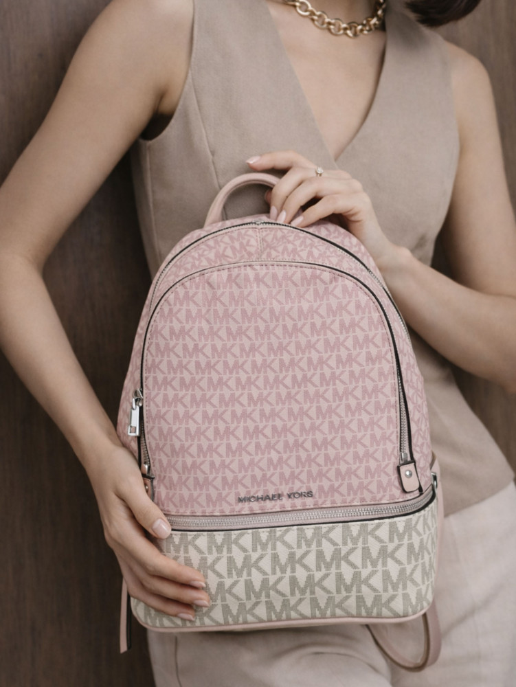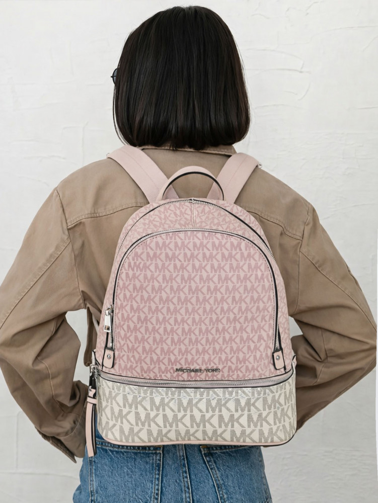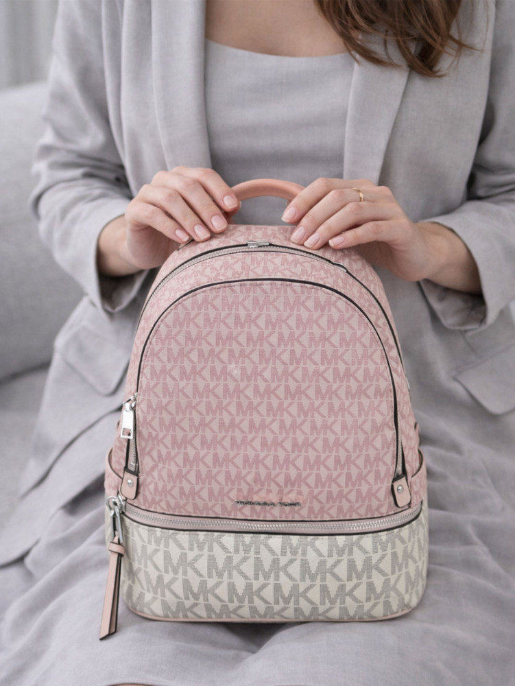 Стильный женский рюкзак в нежно-розовом цвете с фирменным принтом — идеальное сочетание модного дизайна и практичности на каждый день. Элегантная модель выполнена из качественного износостойкого материала, который хорошо держит форму и сохраняет аккуратный внешний вид даже при активной носке. Комбинация розового и бежевого оттенков с трендовым узором делает рюкзак заметным и актуальным аксессуаром.