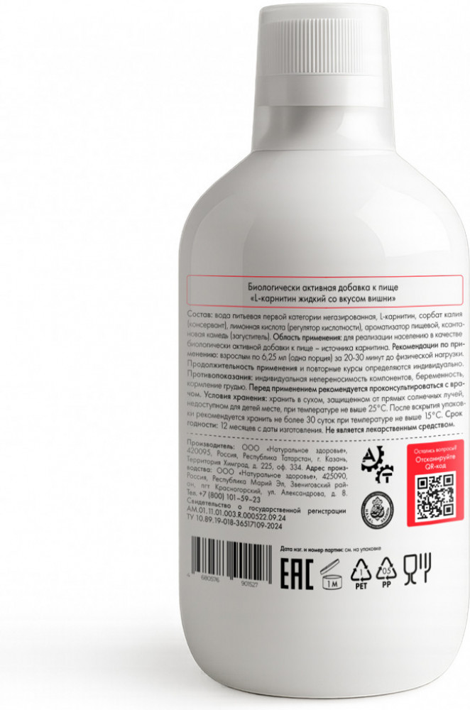Вода питьевая первой категории негазированная; L-карнитин; сорбат калия; лимонная кислота; ароматизатор пищевой,; ксантановая камедь