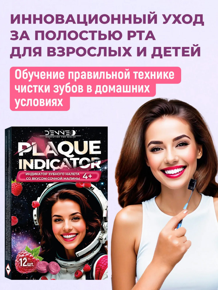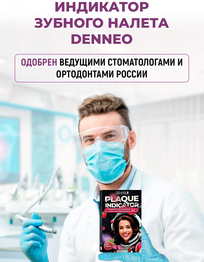 DENNEO Индикатор зубного налёта со вкусом сочной малины «Plaque Indicator»-25% +34