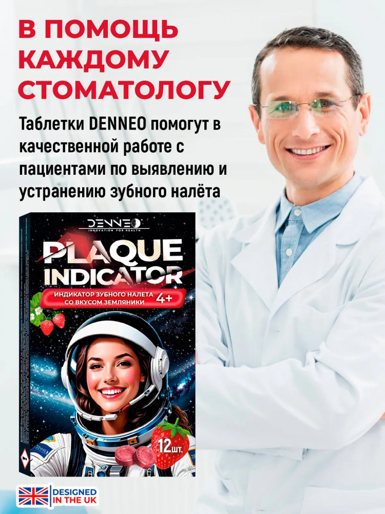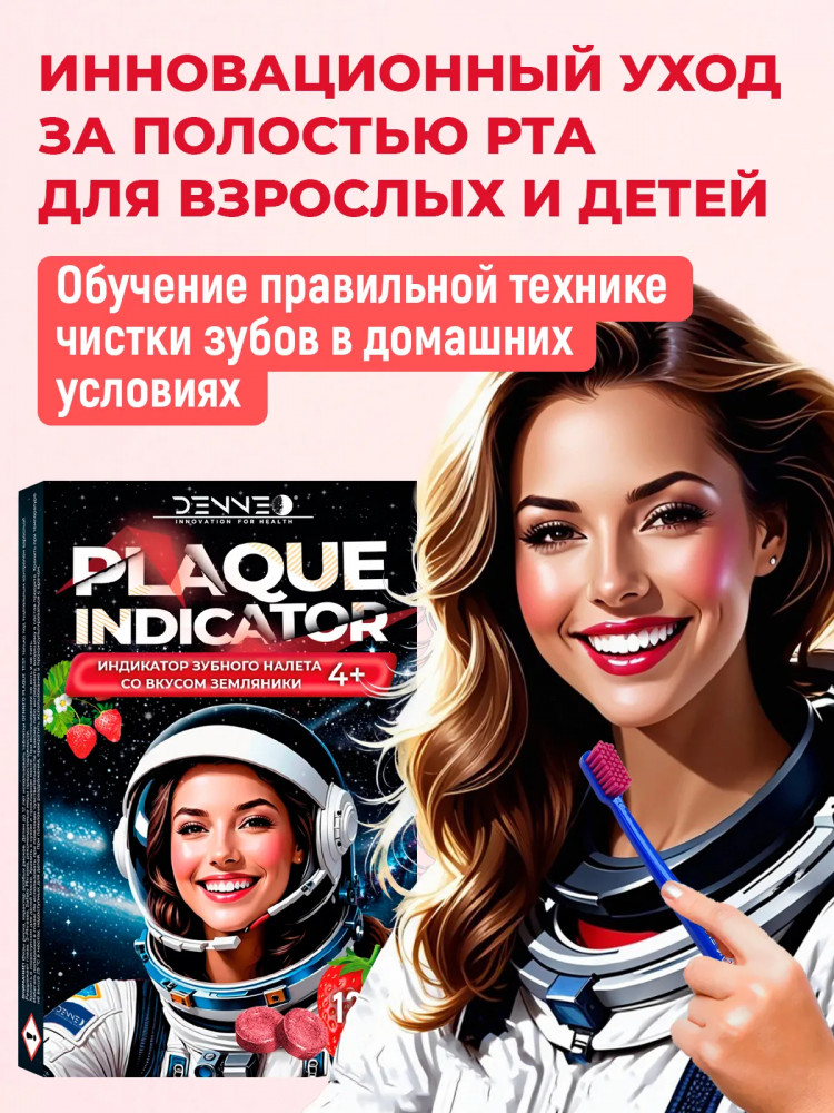 DENNEO Индикатор зубного налёта со вкусом земляники «Plaque Indicator»-25% +34