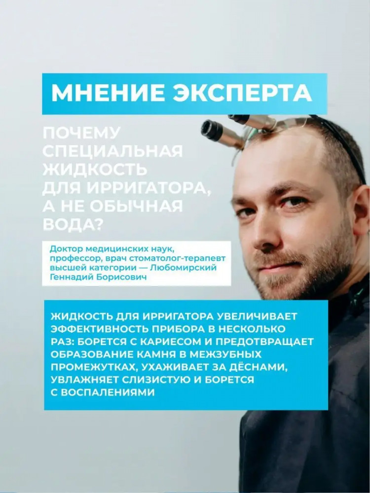 Waterdent Жидкость для ирригатора + ополаскиваетль для полости рта 2 в 1 «Анти-кариес»