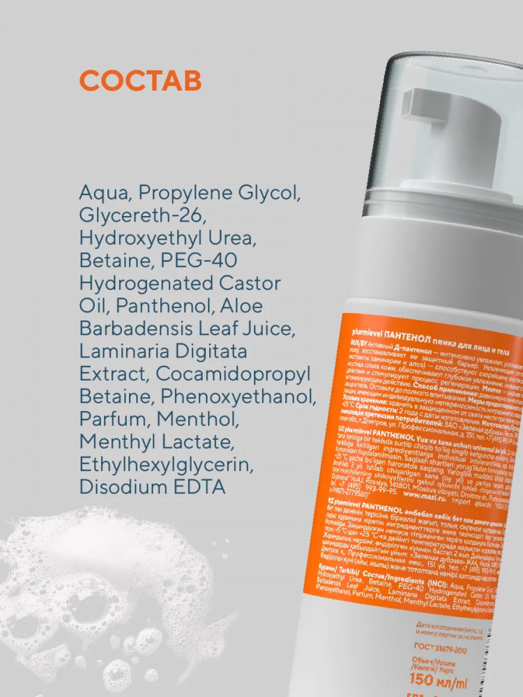 Pharmlevel Пенка для лица и тела с пантенолом