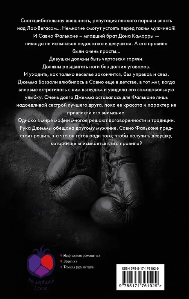 💳 Оплатить за товар можно при получении 🇰🇿 Есть бесплатная доставка по Казахстану от 1 дня 🎁 Копите бонусы с каждой покупки Серия: Хроники Каморры Сногсшибательная внешность, репутация плохого парня и власть над Лас-Вегасом... Немногие смогут устоять перед таким мужчиной! И Савио Фальконе — младший брат Дона Каморры — никогда не испытывал недостатка в девушках. А его правила были очень просты... Девушки должны быть чертовски горячи. Должны раздвигать ноги без долгих уговоров. И уходить, как только веселье закончится, без упреков и слез. |