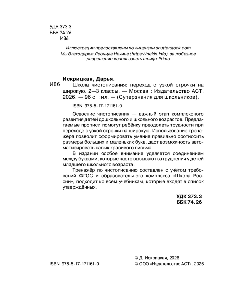 💳 Оплатить за товар можно при получении 🇰🇿 Есть бесплатная доставка по Казахстану от 1 дня 🎁 Копите бонусы с каждой покупки Серия: Суперзнания для школьников Освоение чистописания — важный этап комплексного развития детей дошкольного и школьного возрастов. Предлагаемые прописи помогут ребёнку преодолеть трудности при переходе с узкой строчки на широкую. Использование тренажёра позволит сформировать умения правильно соотносить размеры больших и маленьких букв, даст возможность автоматизировать навык красивого письма. |