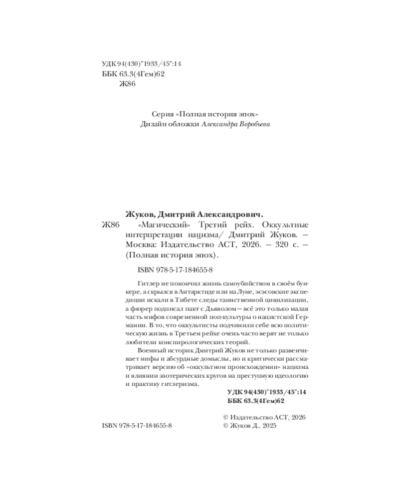 💳 Оплатить за товар можно при получении 🇰🇿 Есть бесплатная доставка по Казахстану от 1 дня 🎁 Копите бонусы с каждой покупки Серия: Полная история эпох Гитлер не покончил жизнь самоубийством в своём бункере, а скрылся в Антарктиде или на Луне, эсэсовские экспедиции искали в Тибете следы таинственной цивилизации, а фюрер подписал пакт с дьяволом — всё это только малая часть мифов современной поп-культуры о нацистской Германии. В то, что оккультисты подчинили себе всю политическую жизнь в Третьем Рейхе, очень часто верят не только любители конспирологических теорий. |