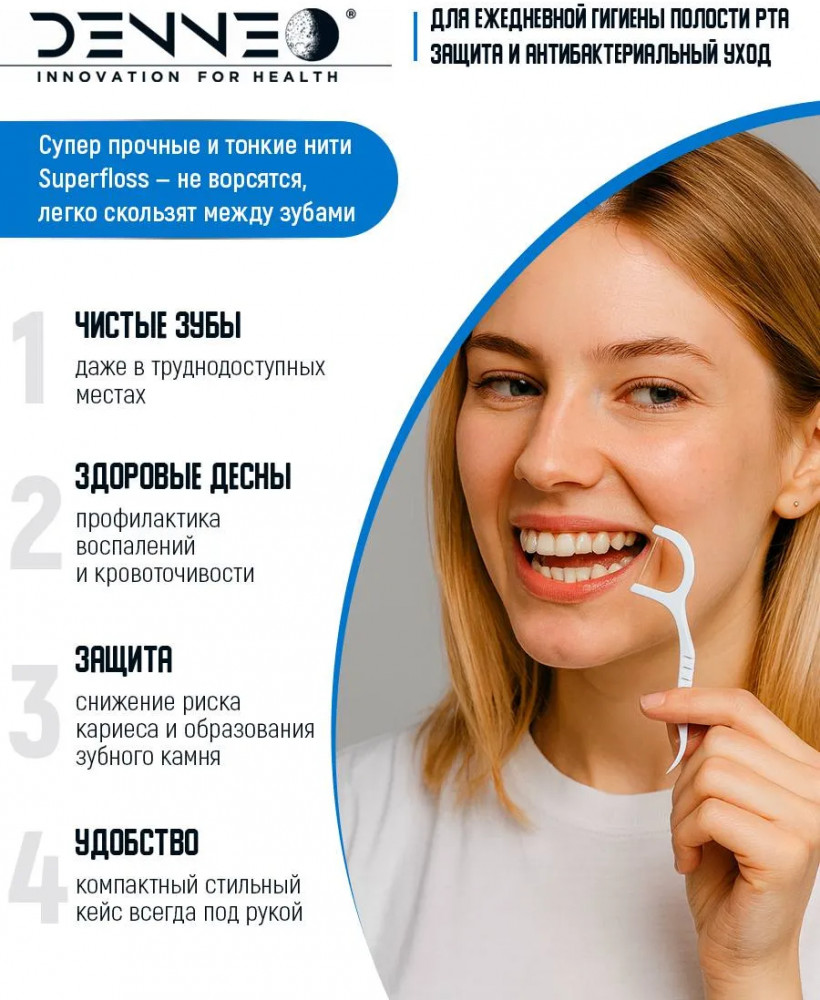 DENNEO Инновационная зубная нить с зубочисткой «Double Dental System 2 в 1»-20% +35