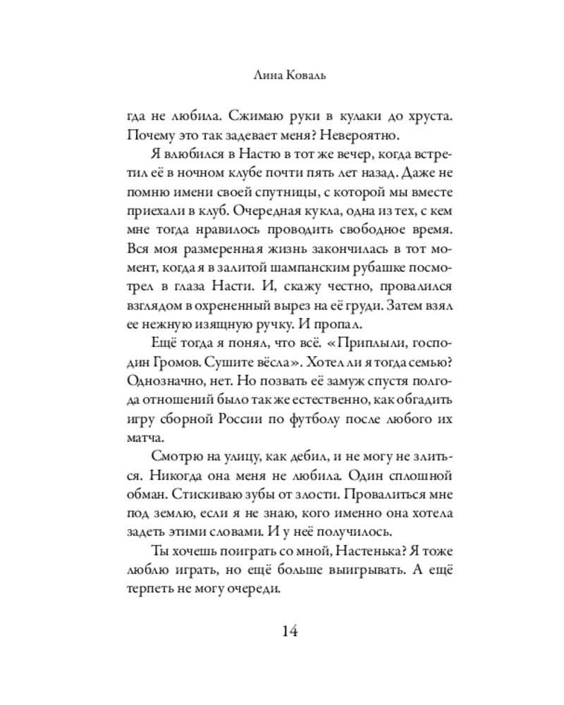 💳 Оплатить за товар можно при получении 🇰🇿 Есть бесплатная доставка по Казахстану от 1 дня 🎁 Копите бонусы с каждой покупки Серия: Будешь только моим Капризная, взбалмошная красотка Анастасия Аверина и целеустремленный, успешный бизнесмен Андрей Громов — казалось бы, чем не пара? С его деньгами и ее внешностью можно горы свернуть. Но нет, они лёгких путей не ищут. За пышной свадьбой следует развод, затем три года гордого молчания с обеих сторон — и вот перед нами новый виток любовной интриги, где обоюдное сексуальное влечение осложняется ревностью, подозрениями, провокациями, скандалами, новыми заявлениями об окончательном разрыве и неспособностью этот разрыв осуществить. Кажется, именно эмоциональные качели являются смыслом и целью этих отношений. Но неожиданное происшествие, чуть было не стоившее жизни бывшему мужу Насти, побуждает обоих произвести переоценку ценностей, пересмотреть свои взгляды на семью, любовь и представление о счастье. |