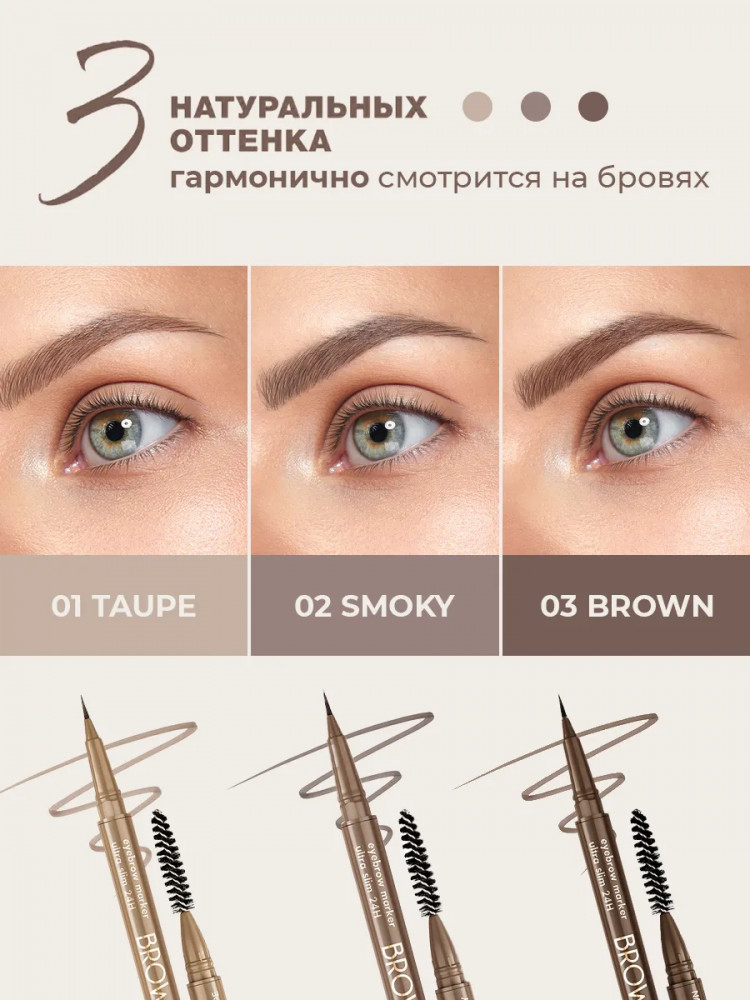 LuxVisage Маркер для бровей «Brow Filter Ultra Slim 24H», оттенок 01 Taupe