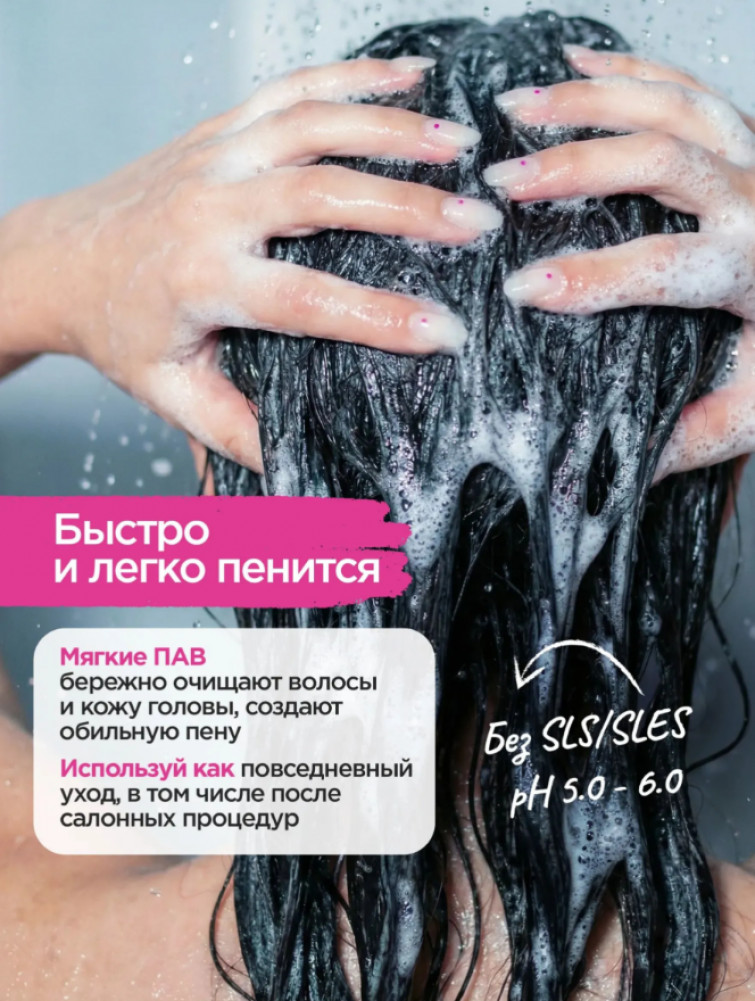 Шампунь обладает формулой которая интенсивно и тщательно промывает волосы и кожу головы даже после использования укладочных средств, подходит для нормальных и склонных к жирности волосам. Сбалансированная формула подходит для регулярного применения и всех типов волос: прямых, кудрявых и пушистых, вьющихся и окрашенных.