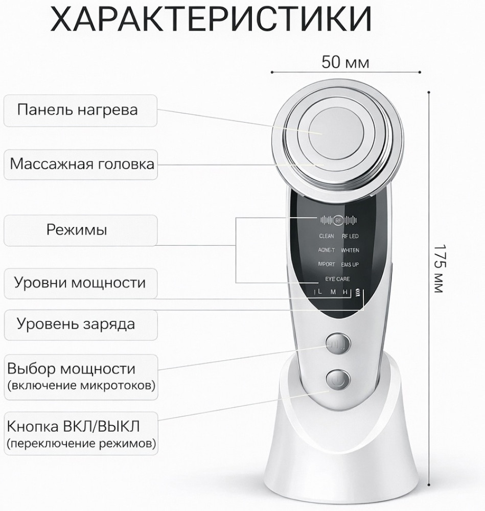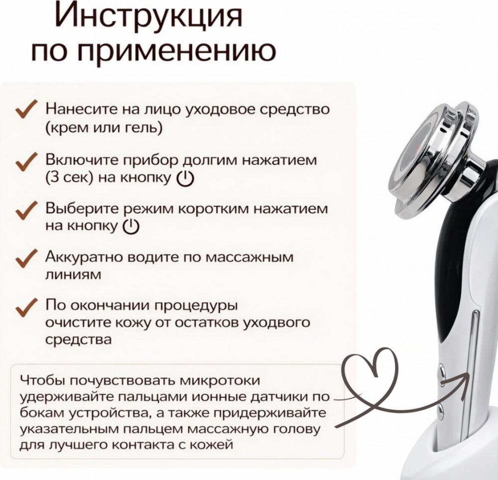 💳 Оплатить за товар можно при получении 🇰🇿 Есть бесплатная доставка по Казахстану от 1 дня 🎁 Копите бонусы с каждой покупки Микротоковый массажёр для лица: |