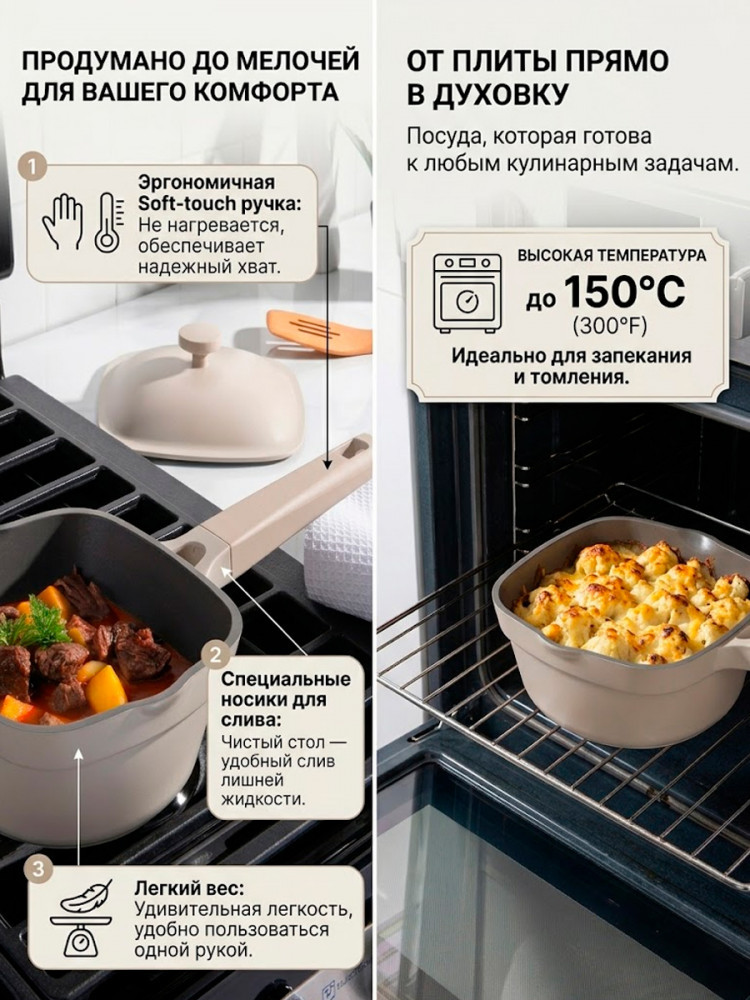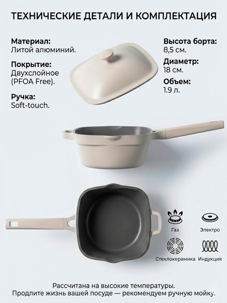 💳 Оплатить за товар можно при получении 🇰🇿 Есть бесплатная доставка по Казахстану от 1 дня 🎁 Копите бонусы с каждой покупки Познакомьтесь с вашей новой любимой кухонной утварью! Эта универсальная глубокая сковорода (сотейник) с премиальным антипригарным покрытием создана для тех, кто ценит простоту приготовления и эстетику на кухне. Благодаря высоким бортикам она идеально подходит для жарки, тушения и томления блюд. |