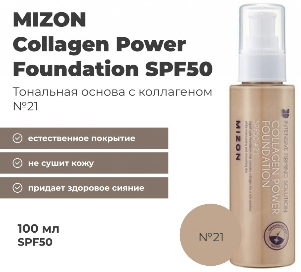 Mizon Тональный крем с коллагеном «Collagen Power Foundation» SPF 50, оттенок 21