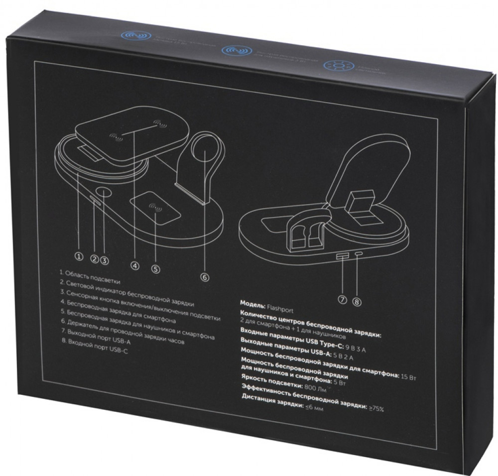 💳 Оплатить за товар можно при получении 🇰🇿 Есть бесплатная доставка по Казахстану от 1 дня 🎁 Копите бонусы с каждой покупки «Flashport» от Evolt — это складная зарядная станция с беспроводной зарядкой для телефона и наушников. В комплекте также идет подставка под зарядку для наручных смарт-часов. На регулируемой панели зарядки смартфона расположены 2 катушки (2 центра беспроводной зарядки), которые позволяют заряжать ваш девайс как в вертикальном, так и горизонтальном положении. Беспроводная зарядка для наушников мощностью 5 Вт подходит для зарядки не только беспроводных наушников, но и второго смартфона. Чтобы включить встроенную лампу, нажмите сенсорную кнопку 1 раз. Для плавного изменения яркости света нажмите и удерживайте сенсорную кнопку при включенной лампе. Кабель 100 см в комплекте. Лампа-диммер яркостью до 800 Лм. Дополнительный порт USB-A для зарядки внешних устройств. |