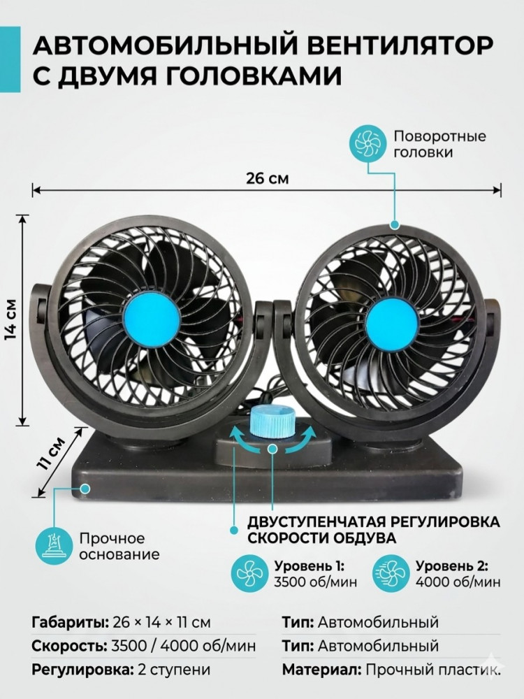 💳 Оплатить за товар можно при получении 🇰🇿 Есть бесплатная доставка по Казахстану от 1 дня 🎁 Копите бонусы с каждой покупки Автомобильный вентилятор имеет компактные размеры 26*14*11 см., что позволяет уго установить на ровной поверхности панели, в комплекте 2 двусторонние липучки. Угол поворота каждого вентилятора 180 градусов, угол наклона 360 градусов, двухступенчатая регулировка скорости обдува (4000 и 3500 об/мин.) Длина кабеля 75 см. |
