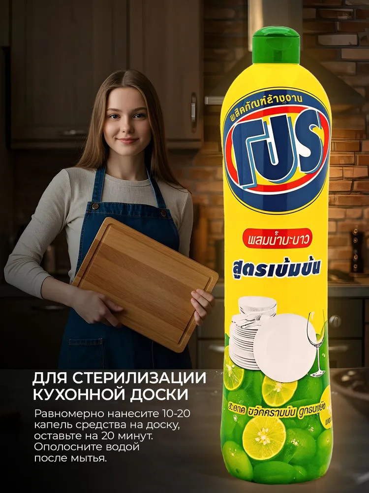 Откройте для себя идеального помощника на кухне — средство для мытья посуды Lion PRO с ароматом лимона! Наша профессиональная формула, разработанная Lion Thailand Pro, обеспечивает максимальную чистоту и гигиену вашей посуды, сохраняя при этом ваше время и деньги. Концентрированная формула нашего средства делает его исключительно экономичным — вам потребуется всего лишь небольшое количество, чтобы справиться с самой сложной грязью. Но несмотря на экономичность, эффективность нашего продукта остается на высоком уровне благодаря содержанию натурального лимонного сока. Наши компоненты с высоким пенообразованием гарантируют моментальное образование густой пены, которая легко справляется с жиром и загрязнениями, даже если вы моете посуду в холодной воде. И это еще не все — наше средство состоит из полностью биоразлагаемых компонентов, что делает его не только безопасным для окружающей среды, но и легко смываемым без остатка, не оставляя разводов или химической пленки.