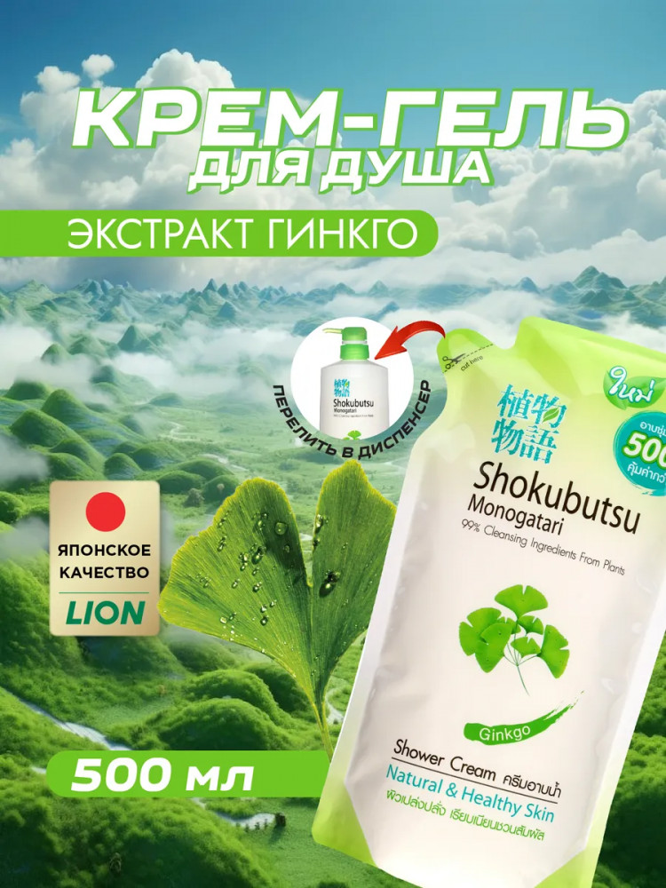 Shokubutsu Крем-гель для душа с экстрактом гинго