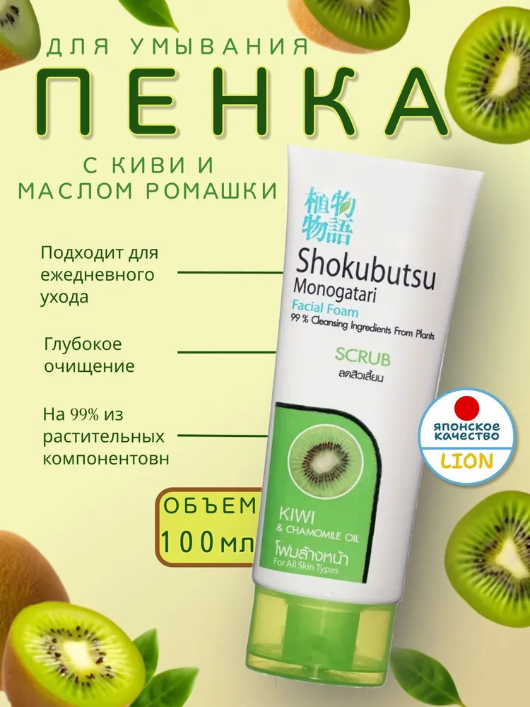Shokubutsu Пенка-скраб для умывания с киви и экстрактом ромашки