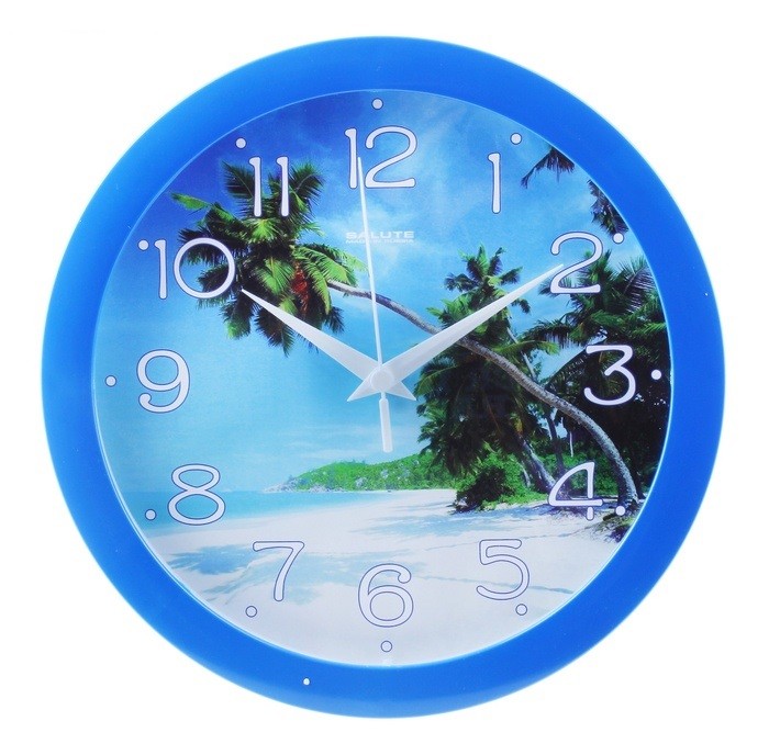 Часы настенные ПЛЯЖ -классные! Радуют глаз своим дизайном, цветом. Пальма, море-красота! Напоминает рекламу баунти - райское наслаждение. ПЛАСТИК КАЧЕСТВЕННЫЙ . Есть шансы, что привезут целыми. Поднимают настроение. Батарейки класса АА.