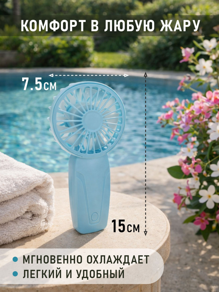 Ручной вентилятор — это универсальный аксессуар для взрослых и детей, который станет незаменимым летом. Подходит для использования в офисе, на улице, в транспорте, на отдыхе и дома. Отличный вариант в качестве компактного подарка.