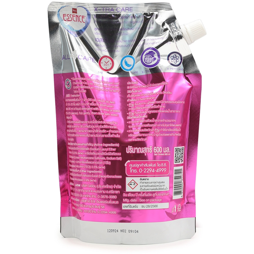 Essence X‑tra Care — концентрированный гель с ферментной технологией, который глубоко удаляет пятна и уменьшает затхлый запах на одежде, сохраняя структуру волокон и цвет вещей после каждой стирки. Аромат Luxury Blossom с нотами розы придает белью стойкую парфюмированную свежесть без резкой отдушки, подходя для ежедневной стирки белых и цветных тканей в машине и вручную. Удобная мягкая упаковка 600 мл экономит место и легко дозируется через винтовую крышку, снижая расход благодаря концентрированной формуле.