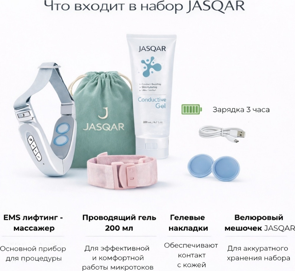 JASQAR Нбор для лифтинга лица EMS, система подтяжки лица и шеи с гелем и ремешком+120