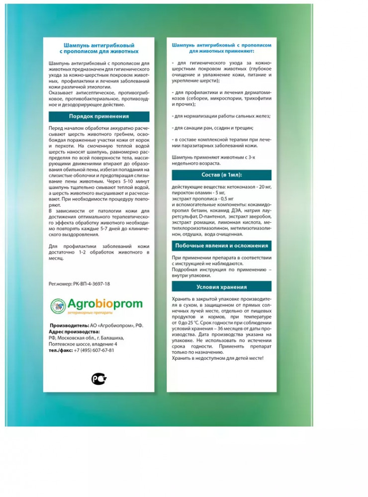 Pchelodar Шампунь для животных антигрибковый с прополисом