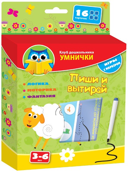 Vladi Toys Развивающие задания «Пиши и вытирай» с маркеромВ данный момент этот товар отсутствует в продаже. Возможно, у нас найдется аналогичный или похожий товар здесь. Серия: Клуб дошкольников Умничек Развивающий набор «Пиши вытирай» с маркером — интересные обучающие игры для детей! Задача простая — нужно выполнить задание, написанное на каждой карточке. Маркер легко вытирается из ламинированного картона, поэтому одну карту можно использовать по несколько раз. |