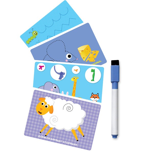 Понравились карточки с заданиями. Интересные задания. Хоть ребенок пока их не выполняет, но калякать и стирать ему понравилось.