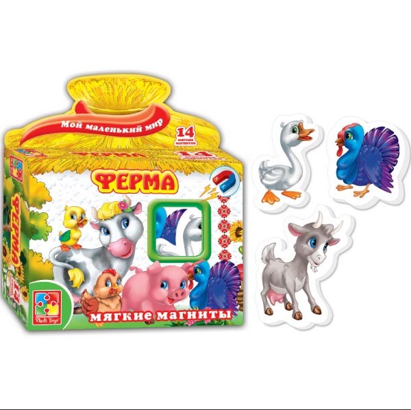Vladi Toys Мягкие магниты «Ферма»В данный момент этот товар отсутствует в продаже. Возможно, у нас найдется аналогичный или похожий товар здесь. Серия: Мой маленький мир Мягкие магниты — крупные, объемные, красочные. Магнитики объемные, толстенькие, их легко брать малышу в ручку и перемещать с места на место. Они легко крепятся к любой металлической поверхности. |