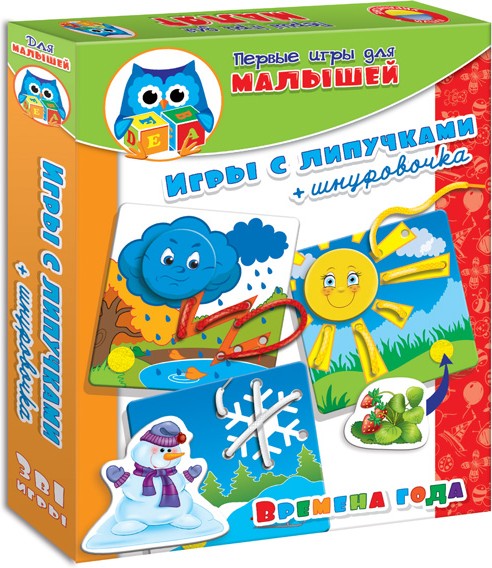 Vladi Toys Шнуровки-липучки «Времена года»В данный момент этот товар отсутствует в продаже. Возможно, у нас найдется аналогичный или похожий товар здесь. Серия: Первые игры Малышок Малышу обязательно нужно знать названия времен года и чем они отличаются, иными словами, основные характеристики каждого сезона. Но просто так учить неинтересно. Гораздо веселее это делать в игре. |