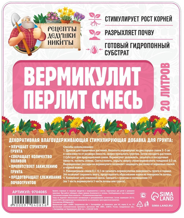 Рецепты дедушки Никиты Смесь вермикулита и перлита-40% +59
