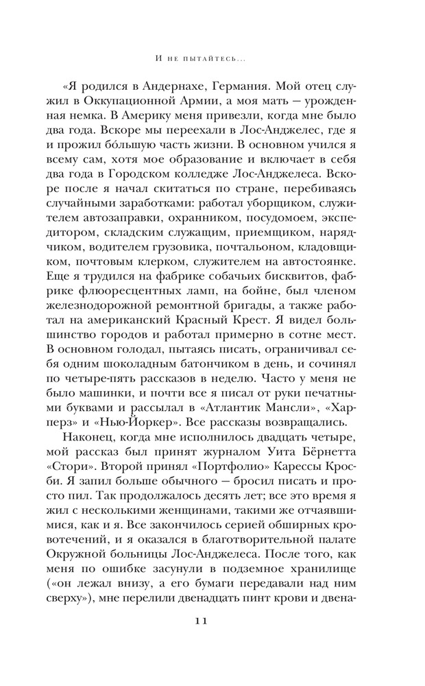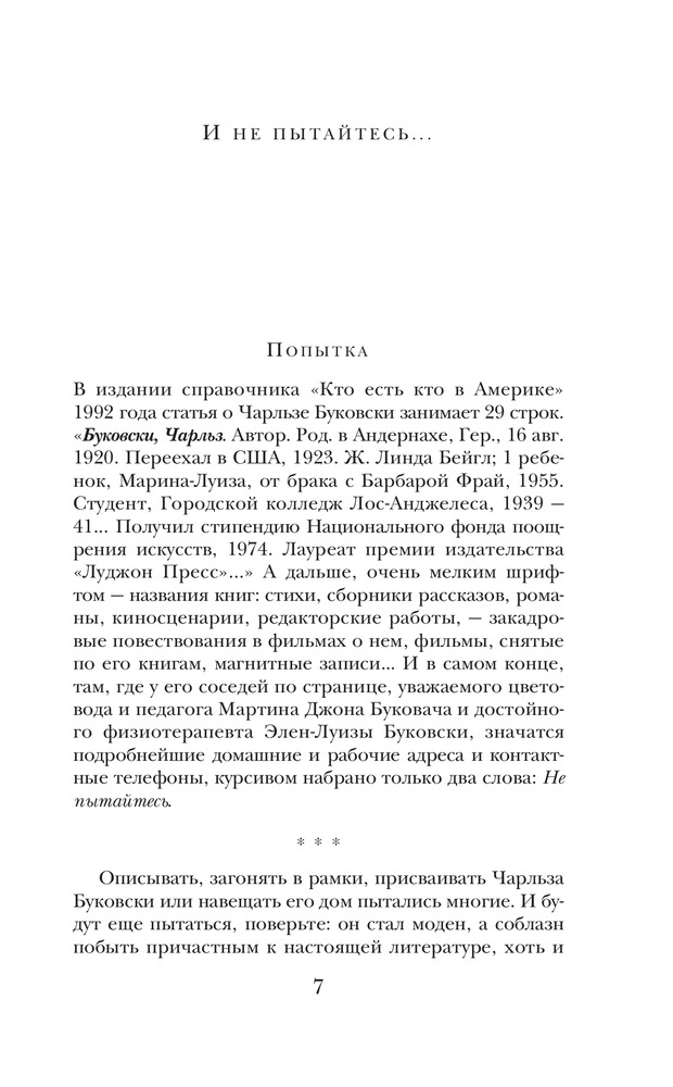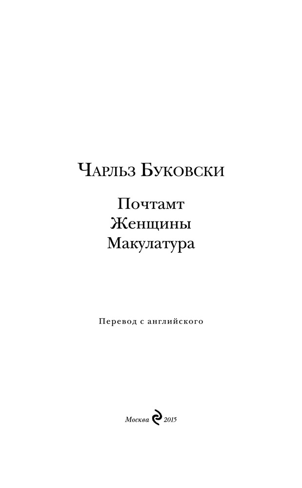 Почтамт. Женщины. МакулатураВ данный момент этот товар отсутствует в продаже. Возможно, у нас найдется аналогичный или похожий товар здесь. Серия: Шедевры мировой классики Чарльз Буковски (1920–1994) — культовая фигура американской литературы, в чьем творчестве отразилась целая эпоха. Автор более сорока книг, среди которых романы, стихи, эссеистика и рассказы. |