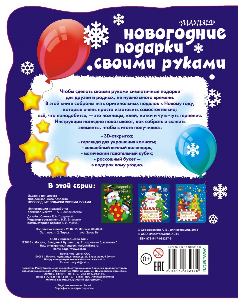 💳 Оплатить за товар можно при получении 🇰🇿 Есть бесплатная доставка по Казахстану от 1 дня 🎁 Копите бонусы с каждой покупки Серия: Моя мастерская Чтобы сделать своими руками симпатичные подарки для друзей и родных, не нужно много времени. В этой книге собраны пять оригинальных поделок к любому празднику, которые очень просто изготовить самостоятельно; всё, что понадобится, — это клей, нитки и |