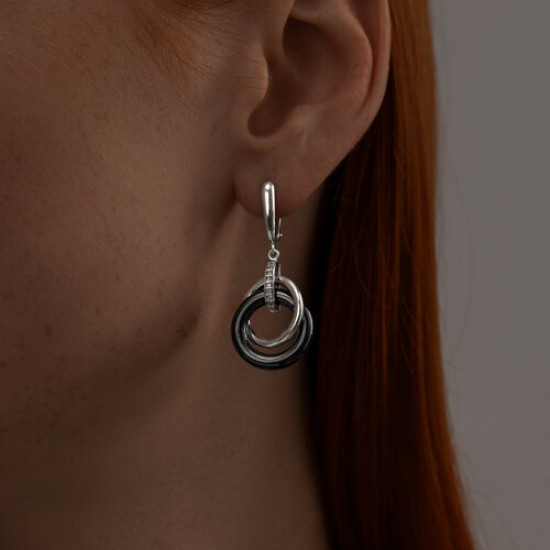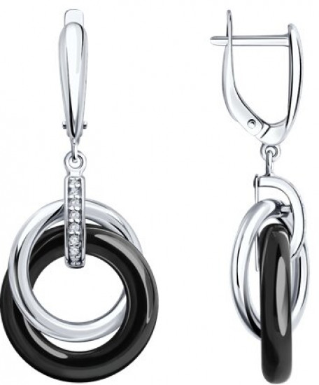 SOKOLOV Серьги из серебра с керамическими вставками и фианитами