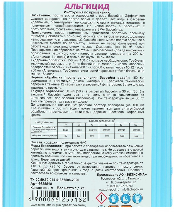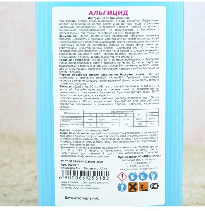 💳 Оплатить за товар можно при получении 🇰🇿 Есть бесплатная доставка по Казахстану от 1 дня 🎁 Копите бонусы с каждой покупки Средство предназначено против роста водорослей в воде бассейна. Эффективно удаляет водоросли на долгое время и делает цвет воды в бассейне идеальным, рН нейтрален, не содержит хлора и тяжёлых металлов, с пониженным пенообразованием. Не рекомендуется использовать в бассейнах с противотоками, фонтанами, гейзерами и в спа-бассейнах. |