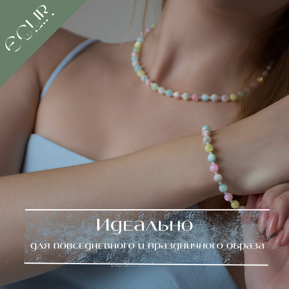 💳 Оплатить за товар можно при получении 🇰🇿 Есть бесплатная доставка по Казахстану от 1 дня 🎁 Копите бонусы с каждой покупки Стильные бусы из цветного перламутра в пастельных оттенках. Выполнены вручную, камни имеют мягкий перелив и напоминают нежные конфетки, дополнены серебряной фурнитурой. Подойдут как для повседневных образов, так и для особых случаев. Яркое и нежное украшение и прекрасный подарок девушке, подруге или близкому человеку. |