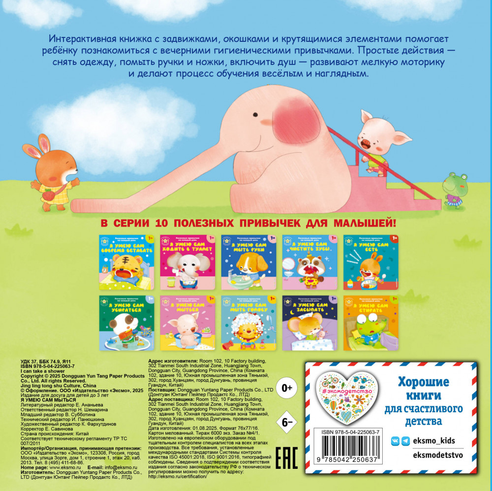 💳 Оплатить за товар можно при получении 🇰🇿 Есть бесплатная доставка по Казахстану от 1 дня 🎁 Копите бонусы с каждой покупки Серия: Веселые деньки. Книги-игрушки о полезных привычках для малышей Серия книг о полезных привычках с подвижными деталями и интерактивными элементами для малышей! Очаровательные малыши поросёнок и лягушонок учатся сами мыться перед сном. На их примере ребёнок узнает, как полезно и приятно принимать душ и быть чистым. Яркие и выразительные иллюстрации и интересные детали превращают чтение в захватывающую игру. Малыш сможет тянуть выдвижные панельки и открывать окошки, развивая мелкую моторику и проявляя любознательность. |
