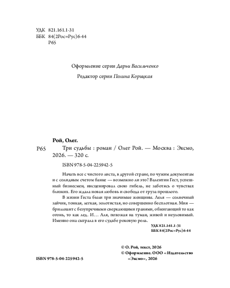 💳 Оплатить за товар можно при получении 🇰🇿 Есть бесплатная доставка по Казахстану от 1 дня 🎁 Копите бонусы с каждой покупки Серия: Олег Рой - мастер психологического романа. Новое оформление (обложка) Начать всё с чистого листа, в другой стране, по чужим документам и с солидным счетом в банке — возможно ли это? Валентин Гест, успешный бизнесмен, инсценировал свою гибель, не заботясь о чувствах близких. Его ждала новая любовь и свобода от груза прошлого. |
