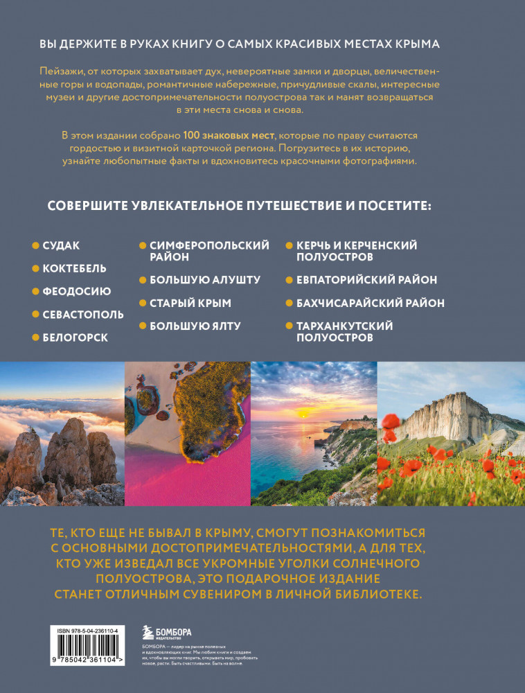 💳 Оплатить за товар можно при получении 🇰🇿 Есть бесплатная доставка по Казахстану от 1 дня 🎁 Копите бонусы с каждой покупки Серия: Подарочные издания. Туризм. Путешествия по России Подарочное издание «Невероятный Крым. Самые красивые места, куда хочется вернуться» — это отличный способ окунуться в приятные воспоминания о солнечных мгновениях на самом красивом полуострове. На страницах книги вы увидите как знаковые и любимые достопримечательности, так и потаённые уголки республики. Красочные фотографии, интересные факты, исторические справки и увлекательные тексты о самых красивых местах Крыма — всё это под одной обложкой. |