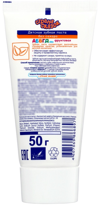 Страна сказок Зубная паста детская фуктовая без сахара