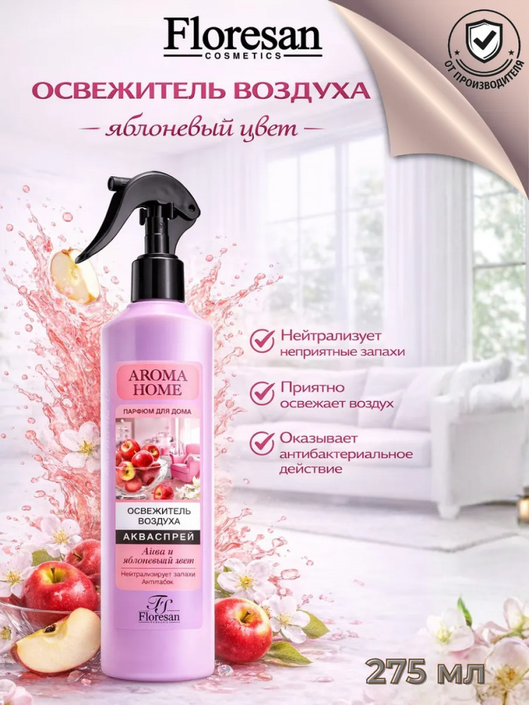Освежитель воздуха-акваспрей «Красное яблоко и миндаль» | Aroma home | Floresan
