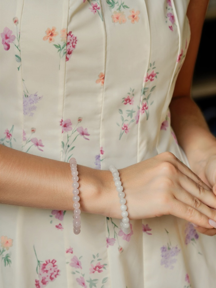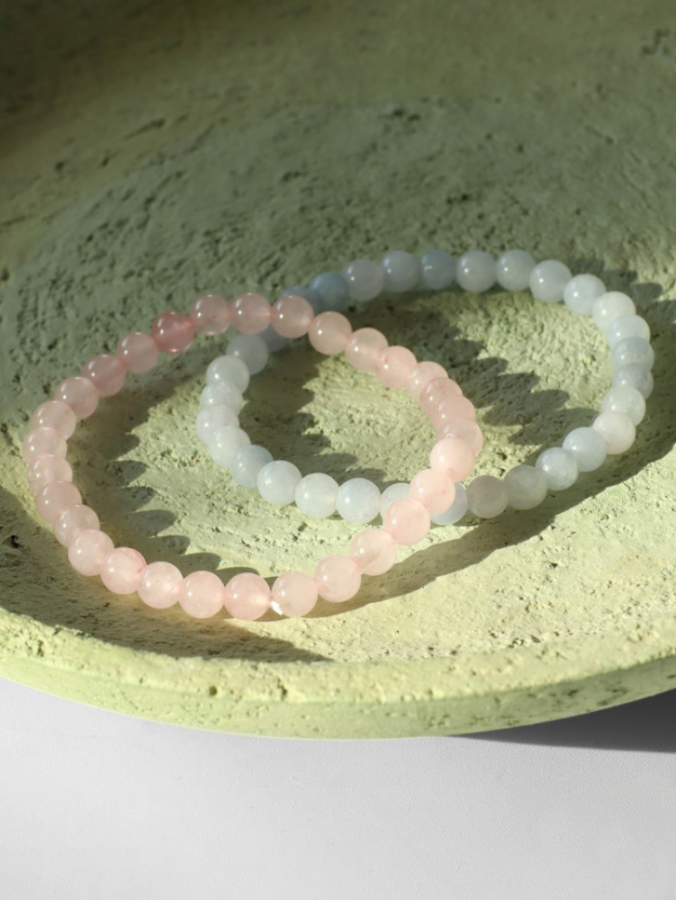 Queen Fair Набор браслетов из бусин «Кварц розовый и аквамарин»