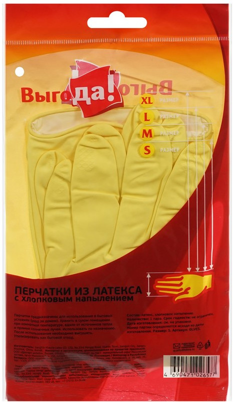 Выгода Перчатки резиновые с хлопковым напылением